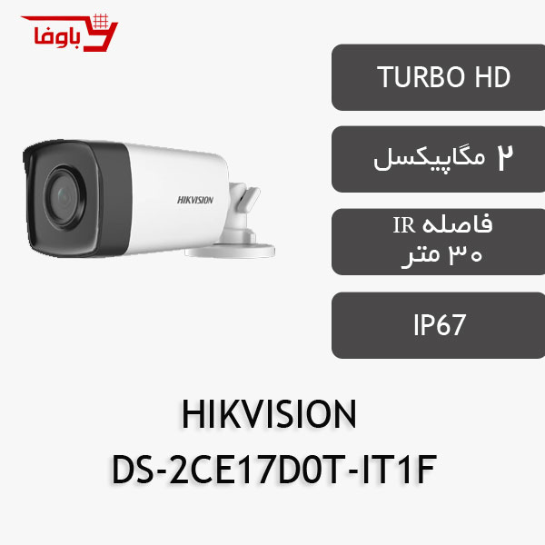 دوربین مداربسته توربو اچ دی هايک ويژن 2 مگاپیکسلی مدل DS-2CE17D0T-IT1F از سری محصولات برند هایک ویژن می باشد . این محصول دارای فناوری توربو اچ دی می باشد . حسگر تصویری به کار برده شده در این دوربین مداربسته 2 مگاپیسل و کیفت تصویر 1080*1920 پیکسل را برای شما فراهم می کند. قدرت دید در شب دوربین مداربسته مدل DS-2CE17D0T-IT1F تا 30 متر می باشد .این محصول در برابر نفوذ گرد و غبار و فشارهای زیاد آب عایق می باشد و دارای استاندارد IP 67 میباشد.