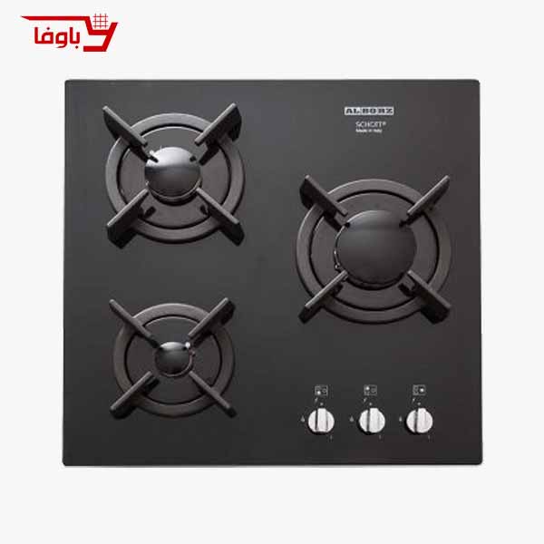 اجاق گاز صفحه ای استیل البرز | 3 شعله | مدل G3501 | شیشه | قطعات ایتالیایی