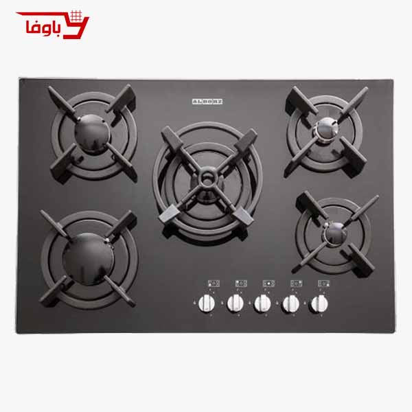 اجاق گاز صفحه ای استیل البرز | 5 شعله | مدل G5701 | شیشه | قطعات ایتالیایی