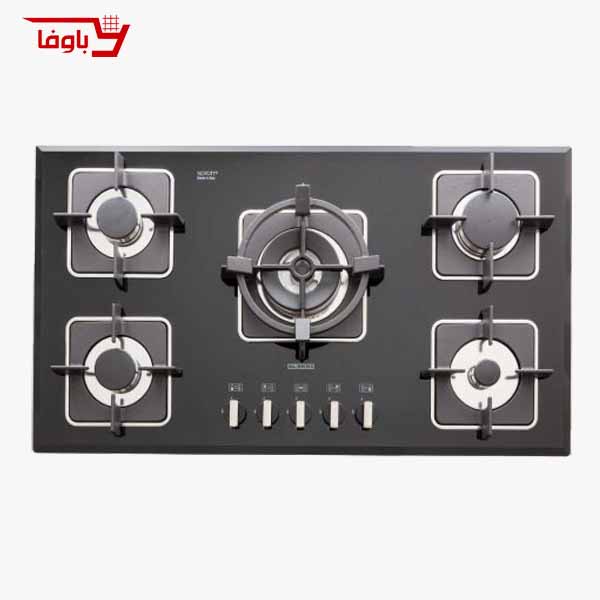 اجاق گاز صفحه ای استیل البرز | 5 شعله | مدل G5910 | شیشه | قطعات ایتالیایی
